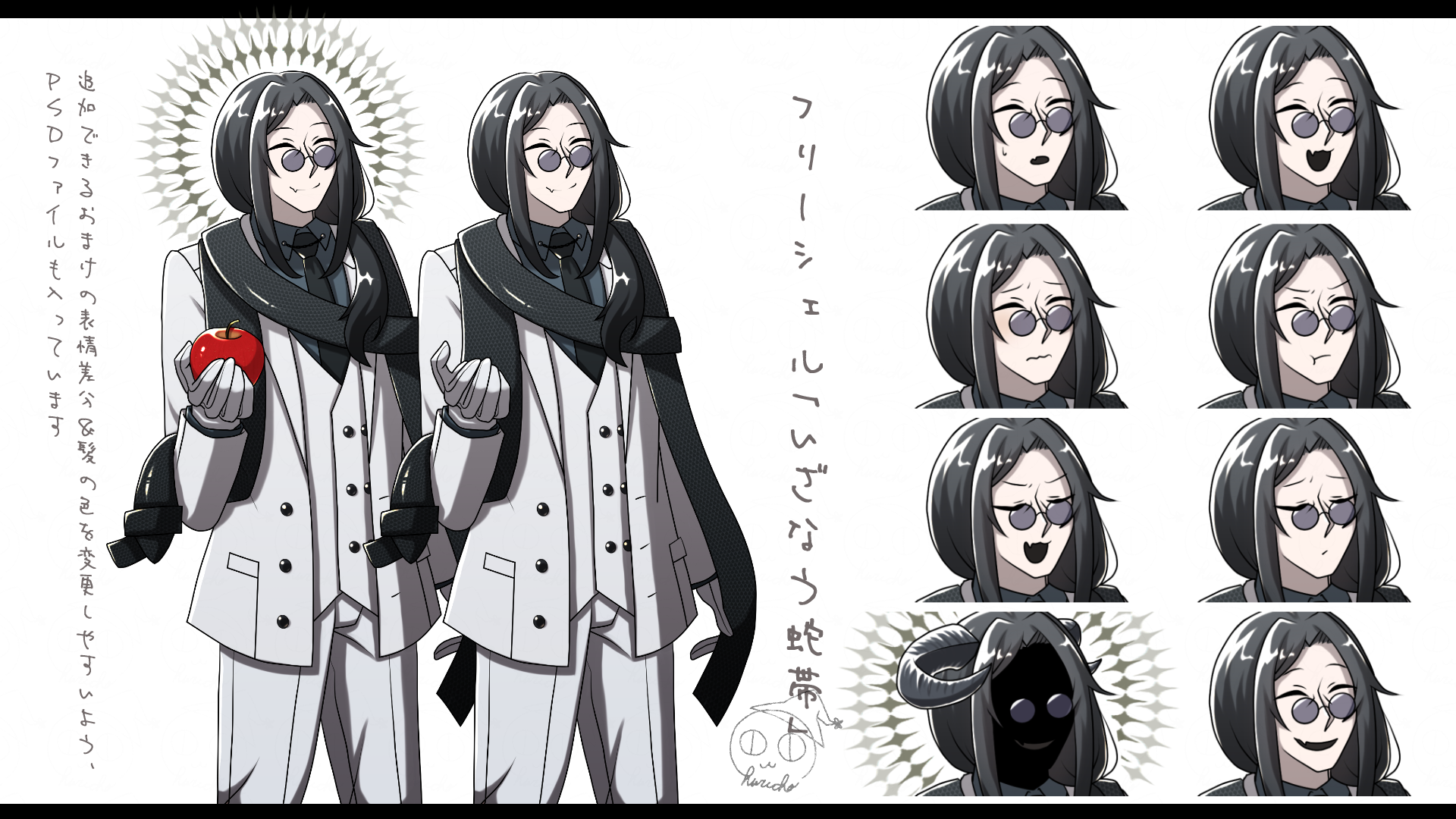 追加できるおまけの表情差分&髪の色を変更しやすいよう、PSDファイルも入っています